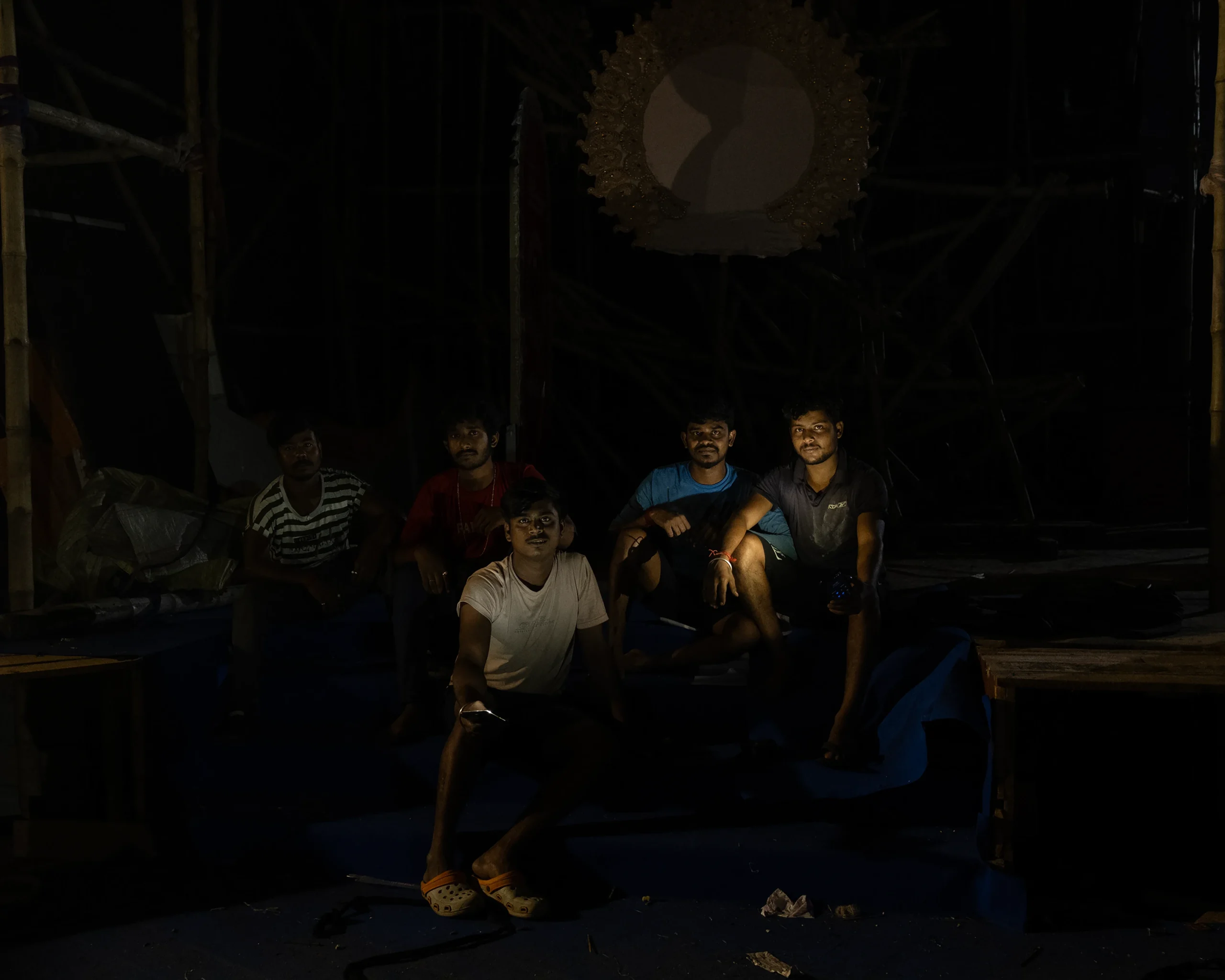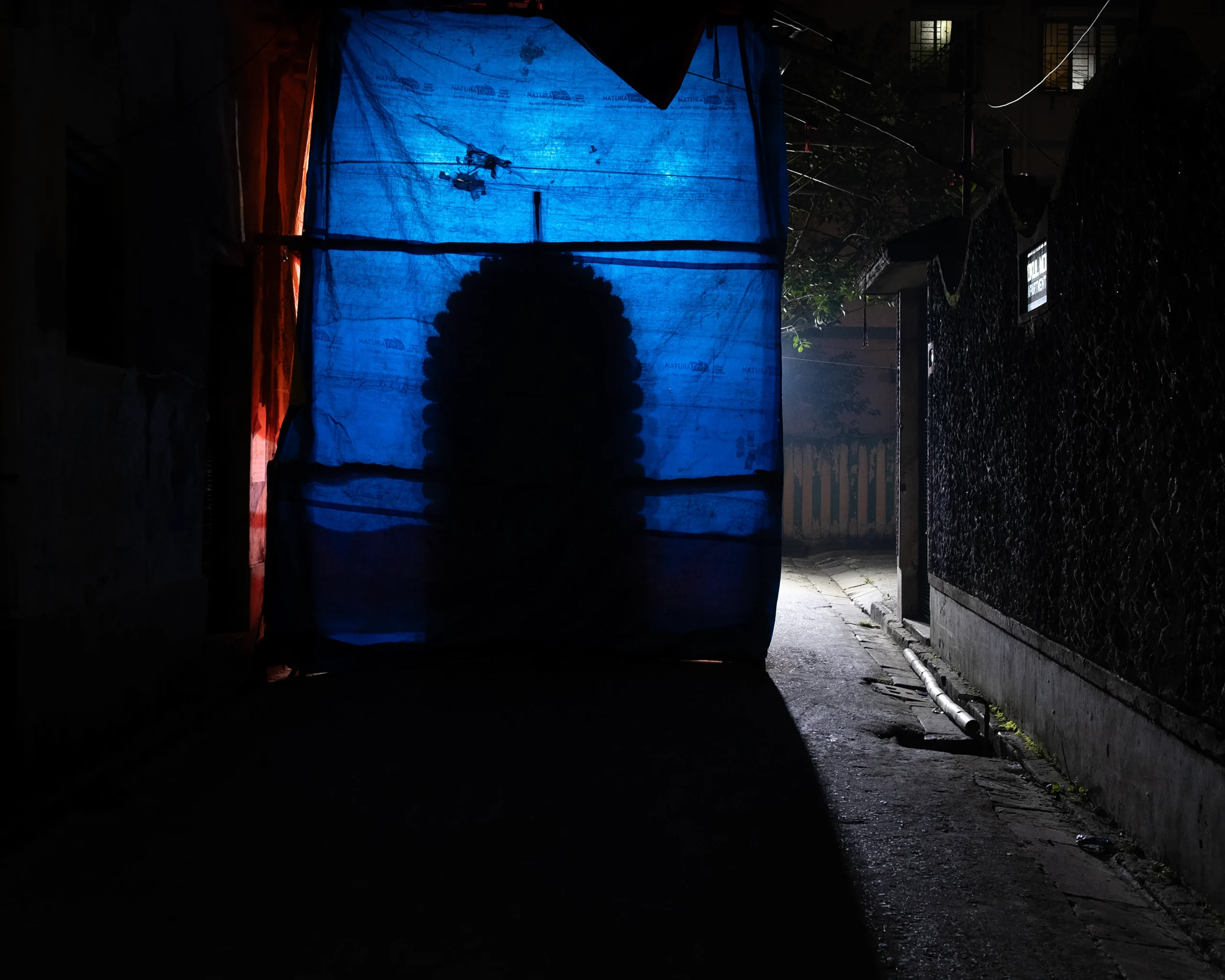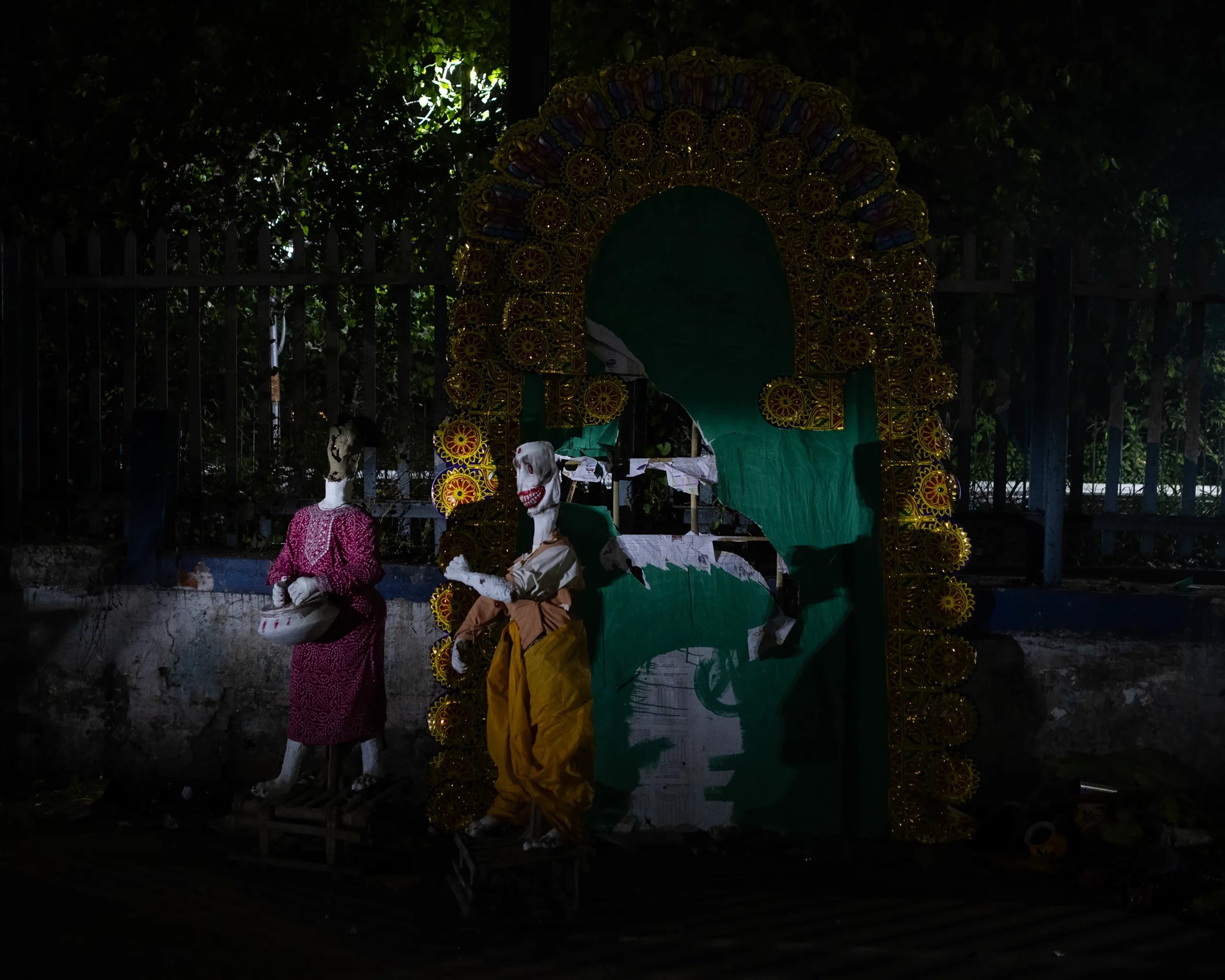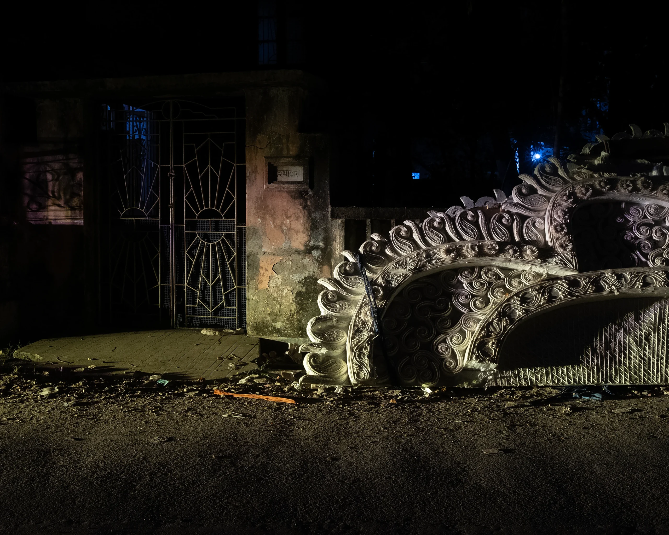 Chaal-Chitra is a visual and psychological inquiry centred on an object or material that acts as a silent witness to the passage of time and space. The project celebrates impermanence—the transient nature of existence, an exploration of how time, space, and existence dissolve into the void. The work primarily unfolds during autumn and late autumn in Bengal, seasons that mark both festivity and decay, abundance and emptiness. Chaalchitra reflects upon the evolution of familial structures as depicted in mythology and Bengali literature, where cities are often glorified as “shohorer chaalchitra”-the urban tapestry—only to transform endlessly with time. The project contemplates the Chaalchitra — the painted backdrop of the Puja idol — as a witness to transformation. Once a sacred object of collective devotion, it becomes ephemeral, discarded soon after immersion, becomes a metaphor for evolution, an overview of the region’s landscape—for how tradition, identity, and emotion are continually rewritten.